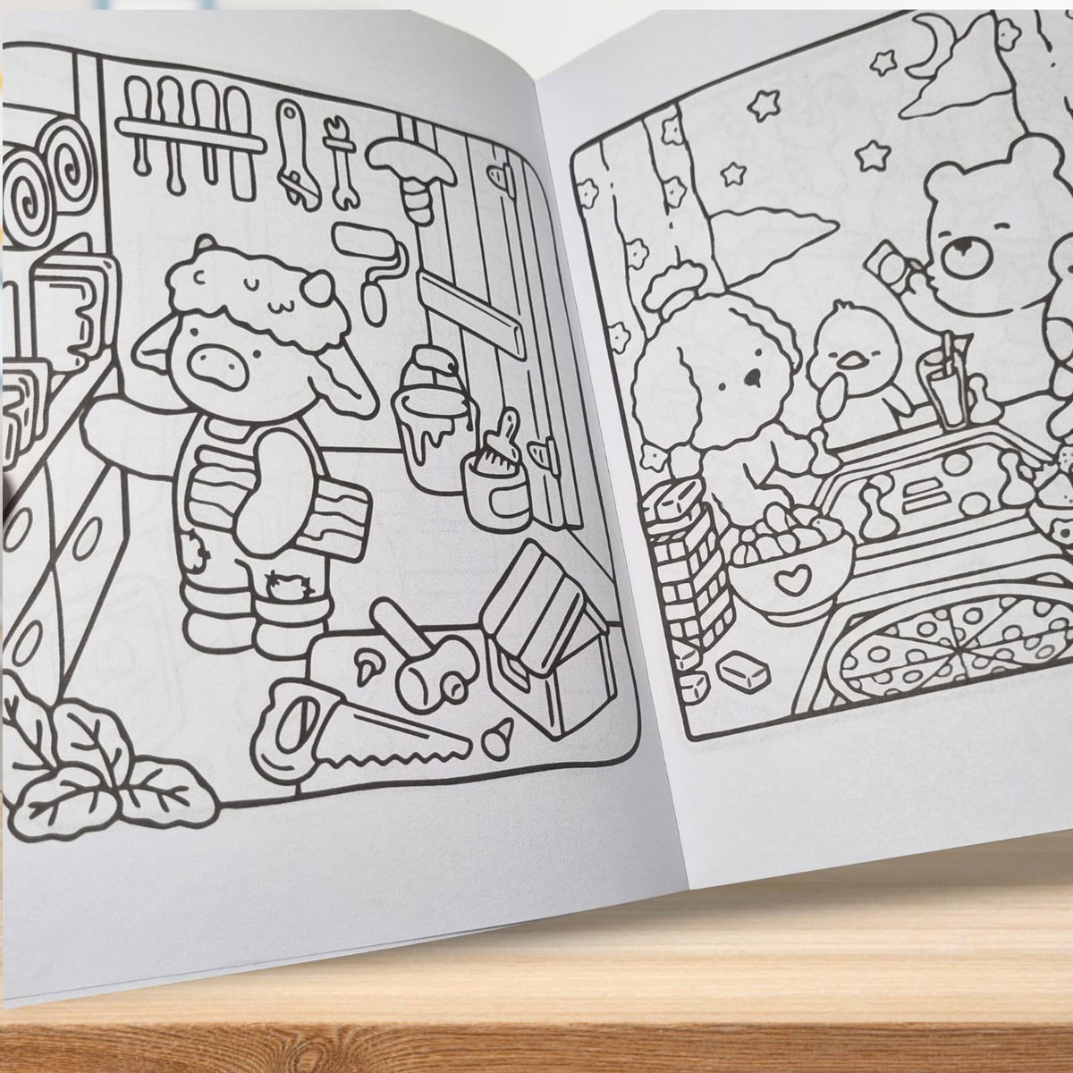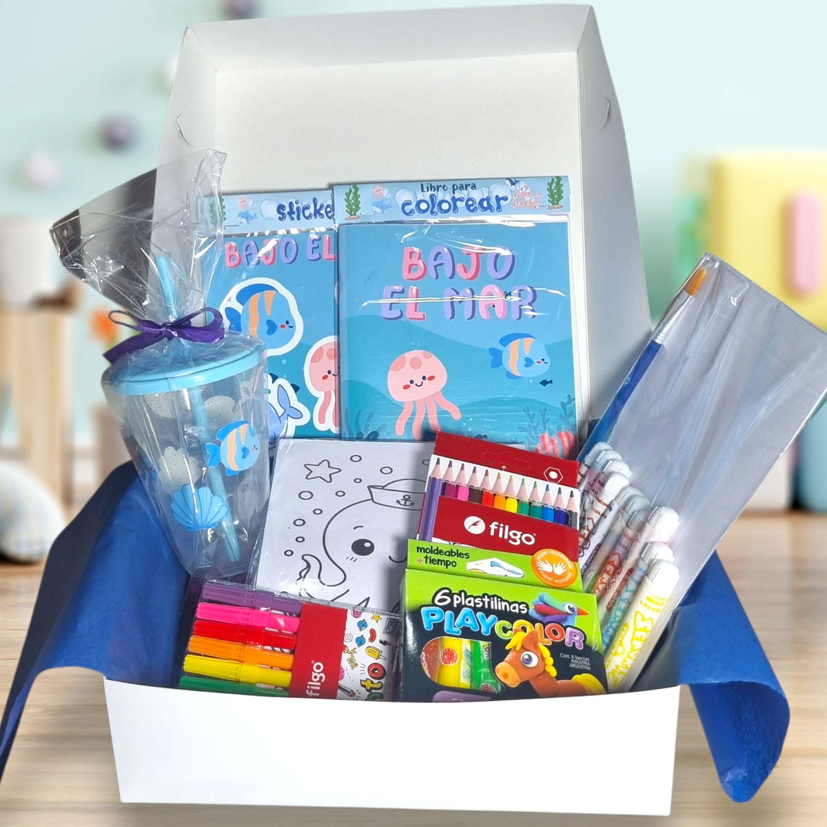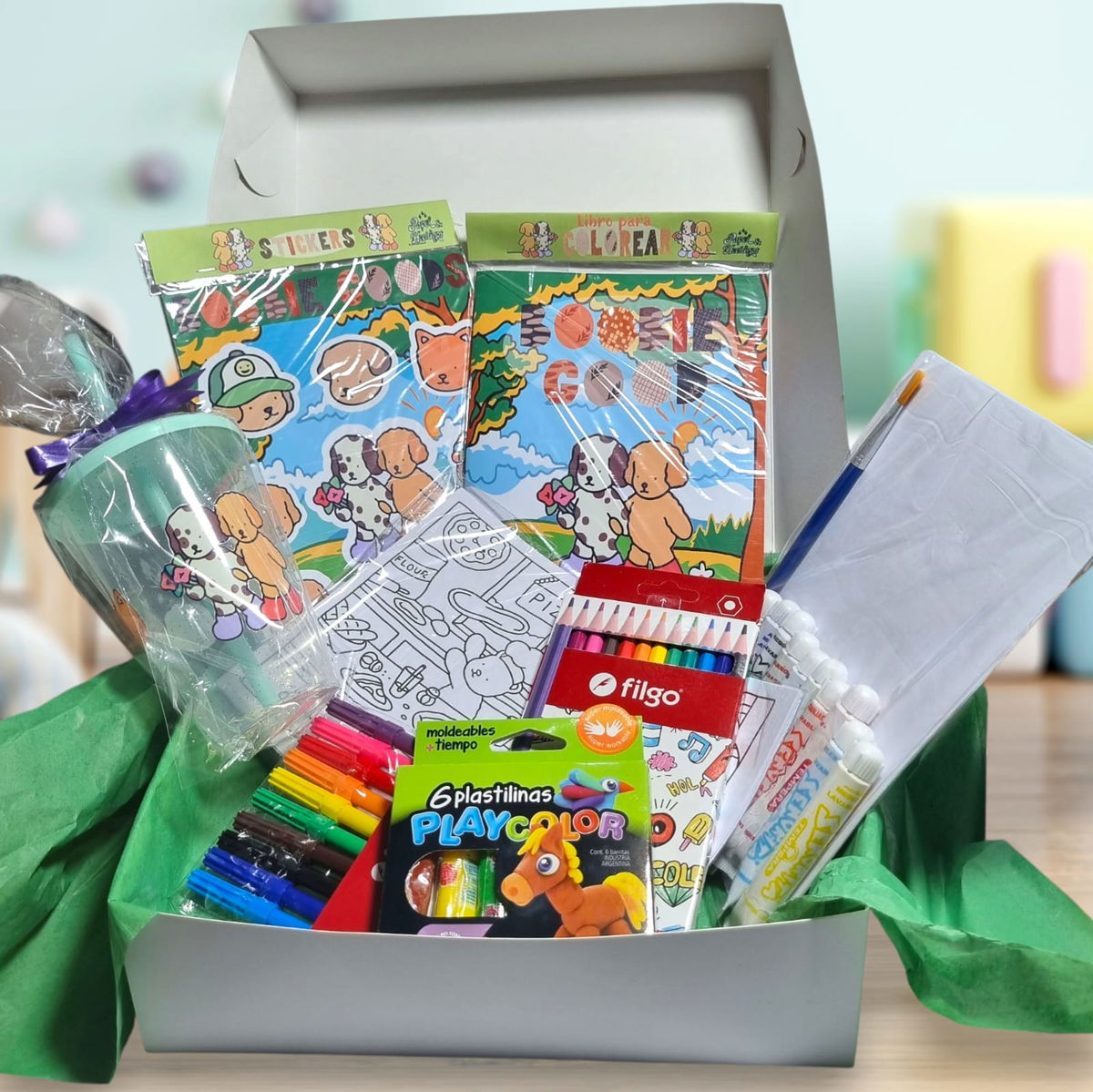 4 actividades temáticas tamaño A5, que incluyen: Rompecabezas para colorear (en cartulina blanca); Juego de 10 diferencias; Juego tipo Tetris y actividad para diseñar un personaje.