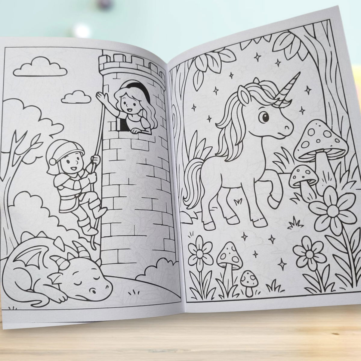 16 hojas A5 para pintar y crear: 10 hojas de 90 gr (ideales para lápices, marcadores y crayones) y 6 hojas especiales que soportan acuarelas