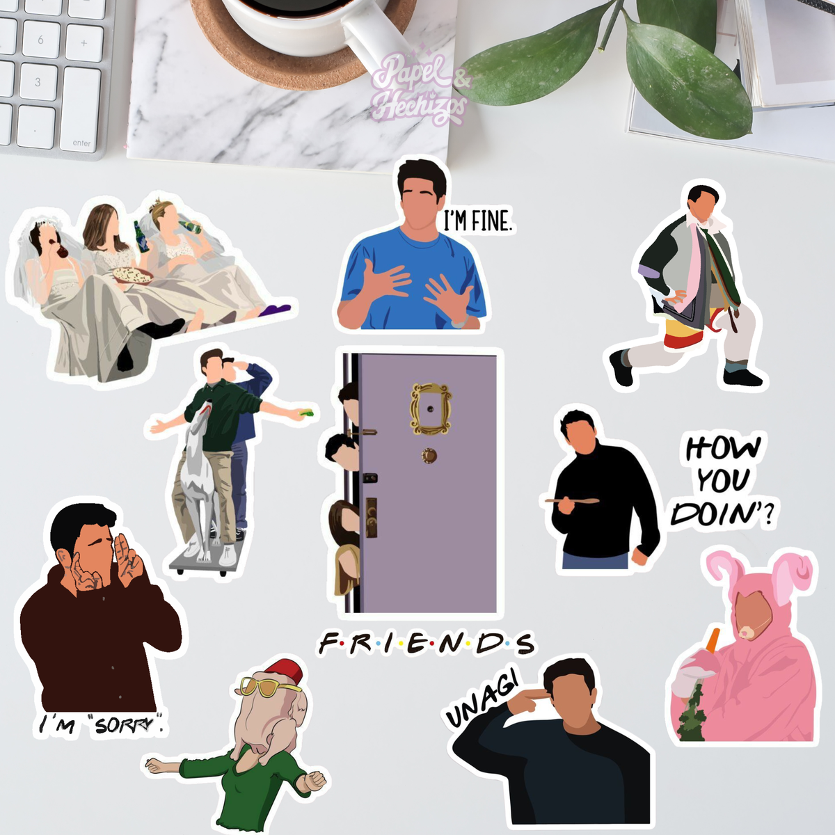 Stickers impresos en vinilo de alta calidad, resistentes y con acabado brillante, ideales para decorar tu cuaderno, agenda, laptop, celular o donde quieras sumar un toque muy Friends.